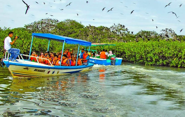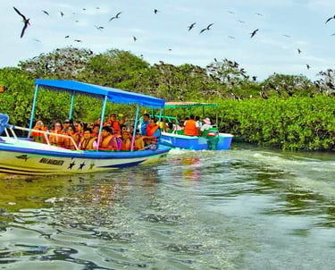 Observación de fauna residente y migratoria en la Isla de los Pájaros, Paseo por la Isla hueso de Ballena y su Playa Virgen, Visita al Zoo criadero de Cocodrilos, Hervideros, Zorritos y Punta Sal (Salidas desde Máncora)