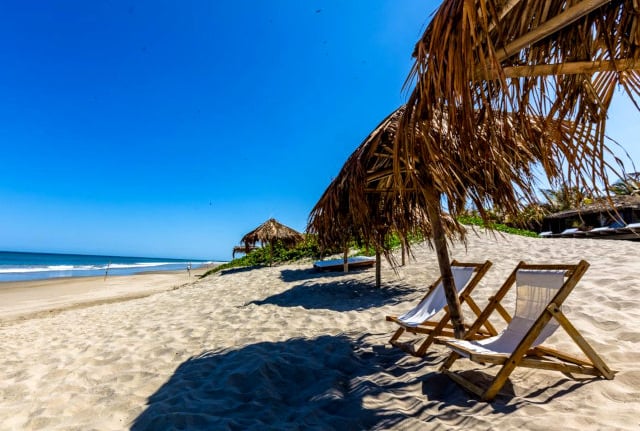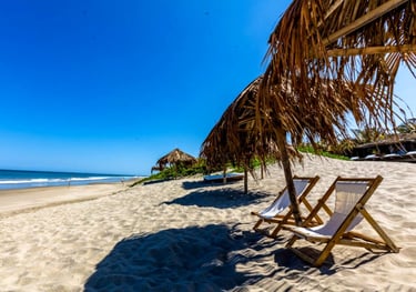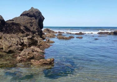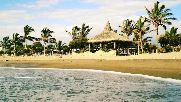 Playa tranquila de aguas cálidas y paisajes naturales, ideal para el descanso y disfrutar del mar.